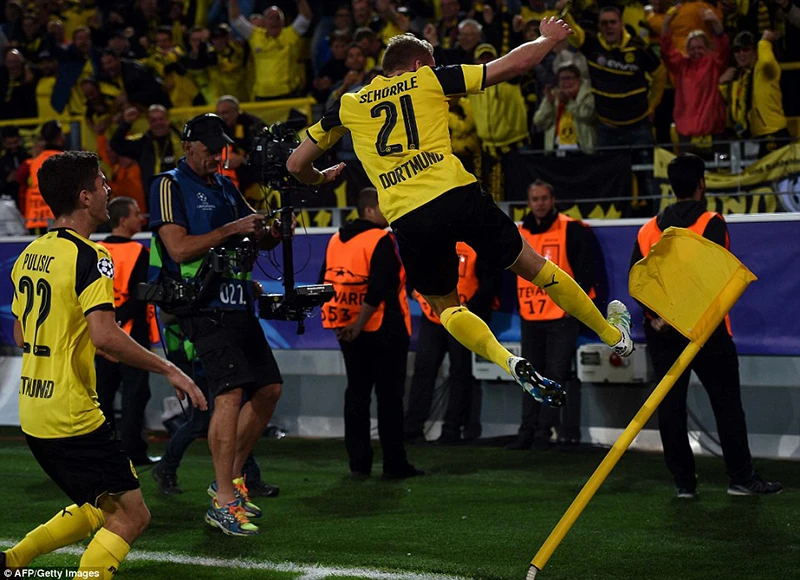 A.Schurrle ăn mừng bàn thắng khi có pha lập công giúp Dortmund vớt lại 1 điểm.