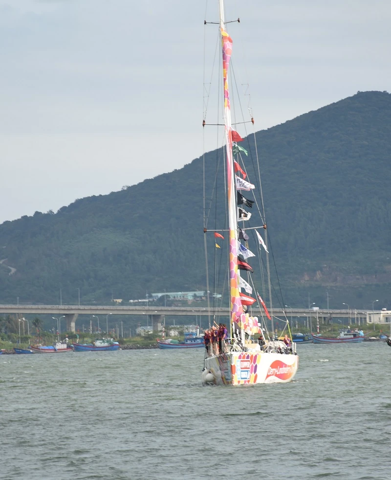 Thuyền buồm đầu tiên của đoàn đua chuẩn bị vào cảng Đà Nẵng.