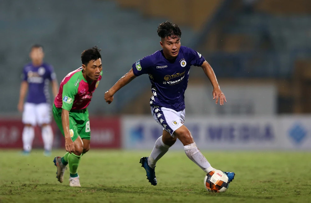 Thành Chung góp một bàn trong chiến thắng 3-0 của Hà Nội. Ảnh: NGỌC DUNG
