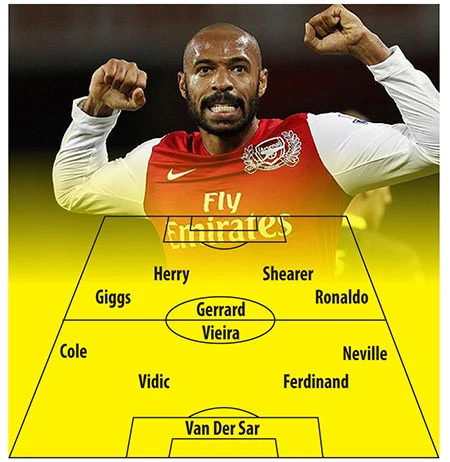 Tạp chí uy tín bên Anh chọn đội hình trên theo tiêu chí dựa trên số lần mà một cầu thủ lọt vào đội hình hay nhất năm của Hiệp hội Cầu thủ chuyên nghiệp nước Anh tính từ mùa giải 1992 đến nay.