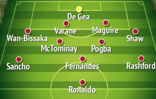 Với Ronaldo ở vị trí tiền đạo mũi nhọn, tiền vệ Bruno Fernandes sẽ đá ngay phía sau người đồng hương Bồ Đào Nha. Hai bên cánh sẽ là hai siêu sao giàu tốc độ với Jadon Sancho ở cánh phải và Marcus Rashford bên cánh trái.