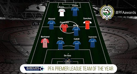 Phong độ quá xuất sắc của Eden Hazard cho Chelsea mùa này đã khiến HLV Jose Mourinho thốt lên rằng” Giá trị của Hazard là 100 triệu bảng cho mỗi cái chân cộng với… Cristiano Ronaldo". Đây là mùa giải thứ ba liên tiếp Hazard có tên trong đội hình PFA của năm.