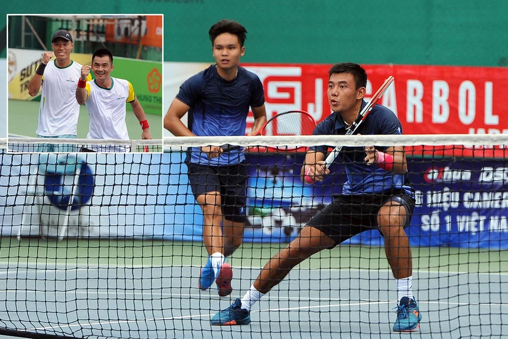Tay vợt Lý Hoàng Nam và Linh Giang sẽ đọ sức với cặp Quốc Khánh - Minh Tuấn(ảnh nhỏ)tranh ngôi vô địch đôi nam giải quần vợt VĐQG. Ảnh: ANH THÚY