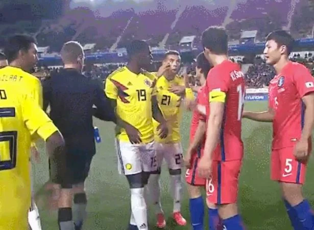 Ở trận đấu này, tuyển thủ Edwin Cardona của Colombia xúc phạm đội trưởng tuyển Hàn Quốc Ki Sung Yueng bằng hành động dùng hai tay kéo mí mắt dài ra để mô tả đặc trưng của người Hàn “má sưng, mắt híp”. Nay chương trình truyền hình của Colombia lại tiếp tục… đổ dầu vào lửa.