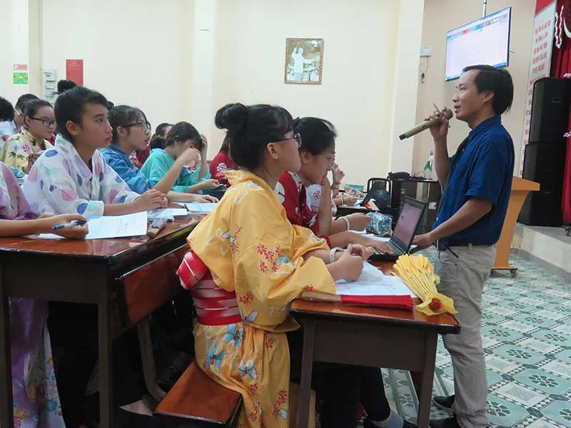 Thầy Ngũ Lê trong giờ học liên môn sử - địa với chủ đề “Nhật Bản - sự trỗi dậy thần kỳ”. Ảnh: PA