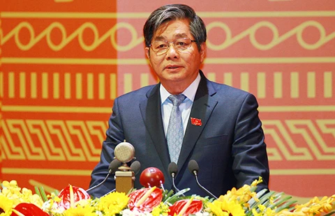 Ủy viên Trung ương Đảng, Bộ trưởng Bộ KH&ĐT Bùi Quang Vinh trình bày tham luận tại Đại hội. Ảnh: TTXVN