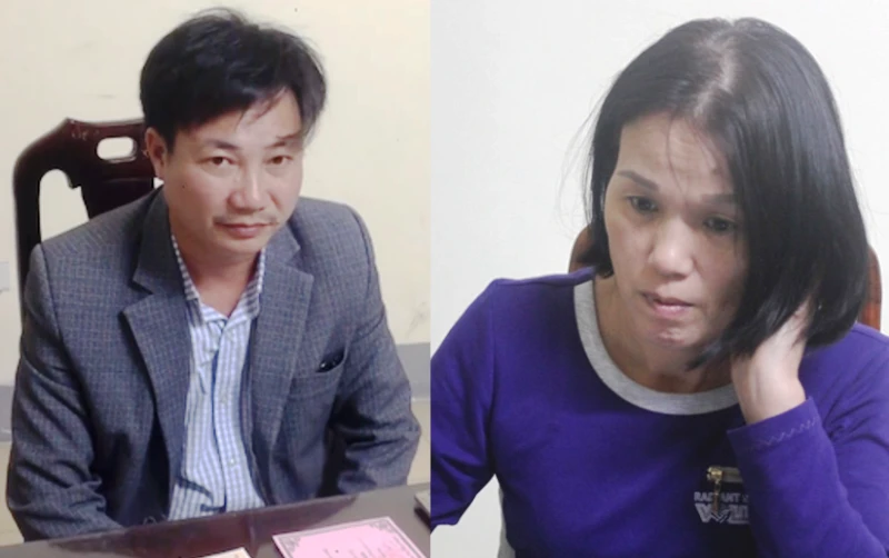 Bị can Nguyễn Kim Hồng và Đậu Thị Tuyết.