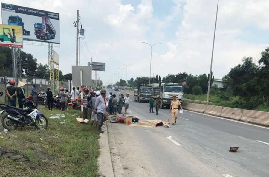 Hiện trường vụ tai nạn giao thông thương tâm.