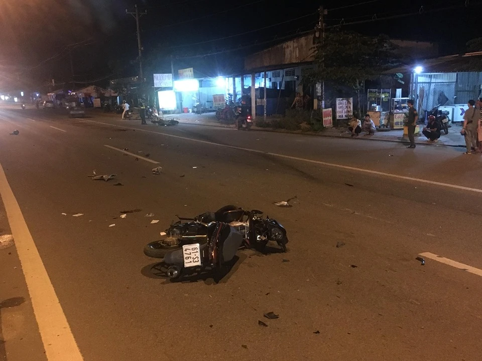 Một số người dân cho biết, họ đang ở trong nhà thì bất ngờ nghe tiếng động mạnh. Khi chạy ra xem thì phát hiện đôi nam nữ nằm bất động trên đường, máu chảy nhiều, gần đó là hai chiếc xe máy mang biển số 67F1-287.00 và 61S3-4761 bể nát nằm cách nhau gần 30 mét.