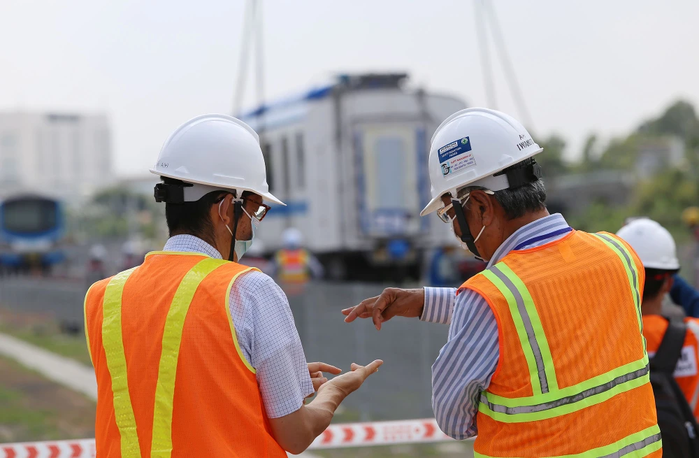 Các chuyên gia Nhật Bản quan sát từ xa và bàn bạc về việc lắp đặt tàu metro.