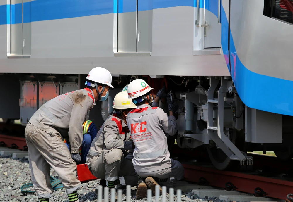 Ngay sau khi toa tàu được đặt xuống đường ray an toàn, các chuyên gia Nhật Bản và kỹ sư, công nhân bắt đầu kiểm tra hệ thống đường ray, căn chỉnh bánh lăn của toa tàu...