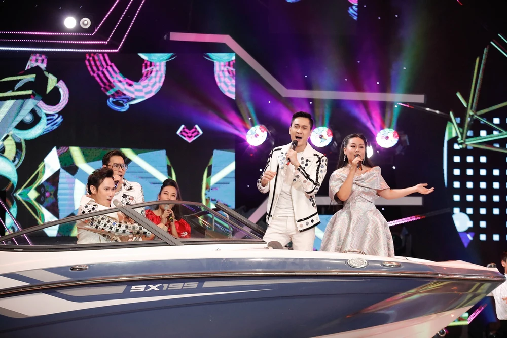 Nguyên Vũ tiết lộ sau tiết mục với siêu xe trong tập chào sân, anh ấp ủ ý tưởng cho đêm chung kết từ rất lâu: “Tôi mang chiếc ca nô nặng nhiều tấn lên sân khấu để chở các ca sĩ, những người bạn thân thiết đồng hành cùng tôi trong những tháng vừa qua”.