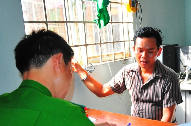 Huỳnh Ngọc Tuấn đang làm việc với cơ quan điều tra. Ảnh: CTV