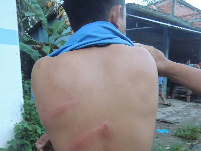 Thương tích do nhóm xã hội đen đánh bằng gậy ba khúc hằn trên lưng của anh Phan Hồng Phúc. Ảnh: T.PHÚC