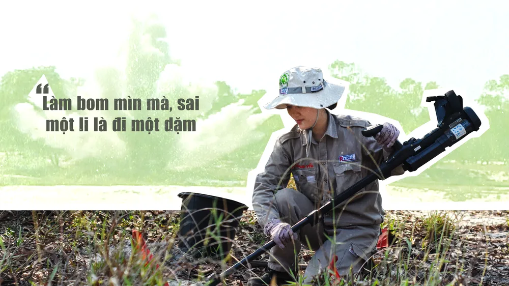 Bà mẹ một con kể rằng, vào một ngày tháng 4, khi cô tham gia rà bom mìn và vật liệu nổ trên một đồng ruộng lúa vừa được người dân thu hoạch tại một xã thuộc huyện Hải Lăng. Lúc này khoảng 8 - 9 giờ sáng, khi đặt máy dò xuống kiểm tra thì những tiếng kêu chói tai đồng loạt vang lên. Lúc đó, rất nhiều bom bi đã được phát hiện.