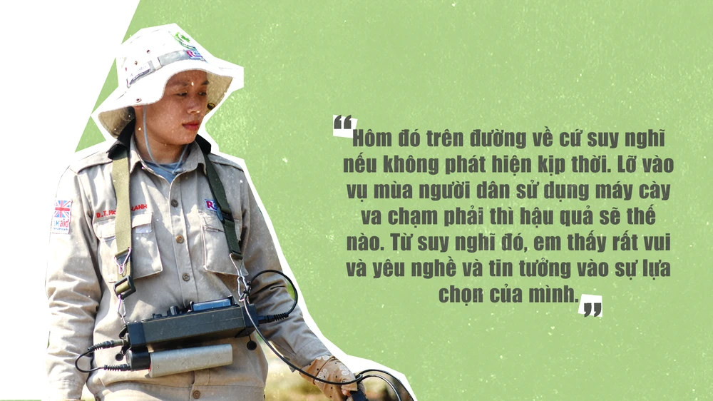 “Ngày hôm đó trên đường về cứ suy nghĩ nếu không phát hiện kịp thời, lỡ vào vụ mùa người dân sử dụng máy cày va chạm phải thì hậu quả sẽ thế nào. Từ suy nghĩ đó, em thấy rất vui và yêu nghề và tin tưởng vào sự lựa chọn của mình”.