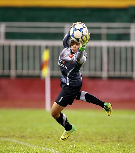 Thủ môn Kim Thanh phải rất vất vả để giữ sạch mành lưới.
