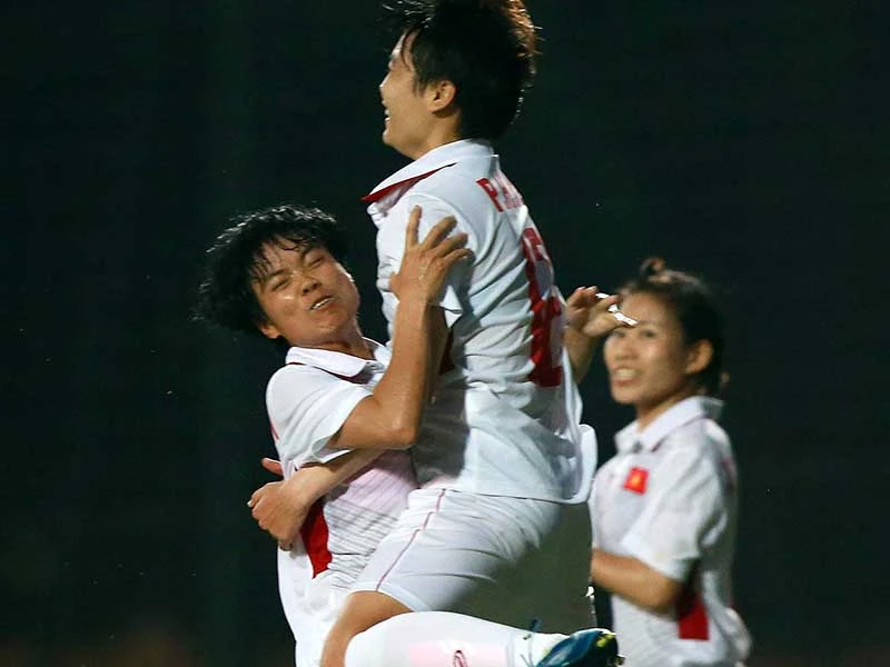 Chiến thắng 2-0 của các cô gái vàng Việt Nam trước Myanmar đưa Việt Nam vào vòng chung kết Asian Cup. Ảnh: QUANG THẮNG