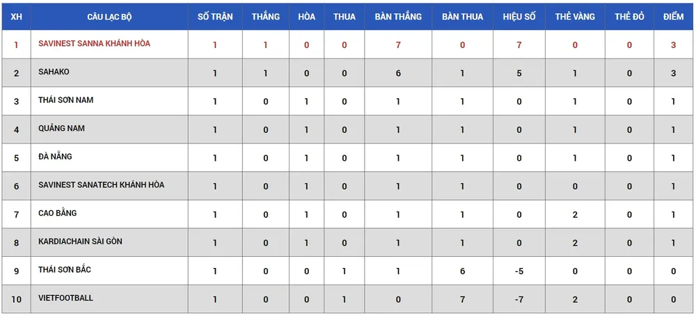 Với kết quả này, sau lượt trận thứ nhất Savinest Sanna Khánh Hòa tạm vươn lên ngôi đầu.