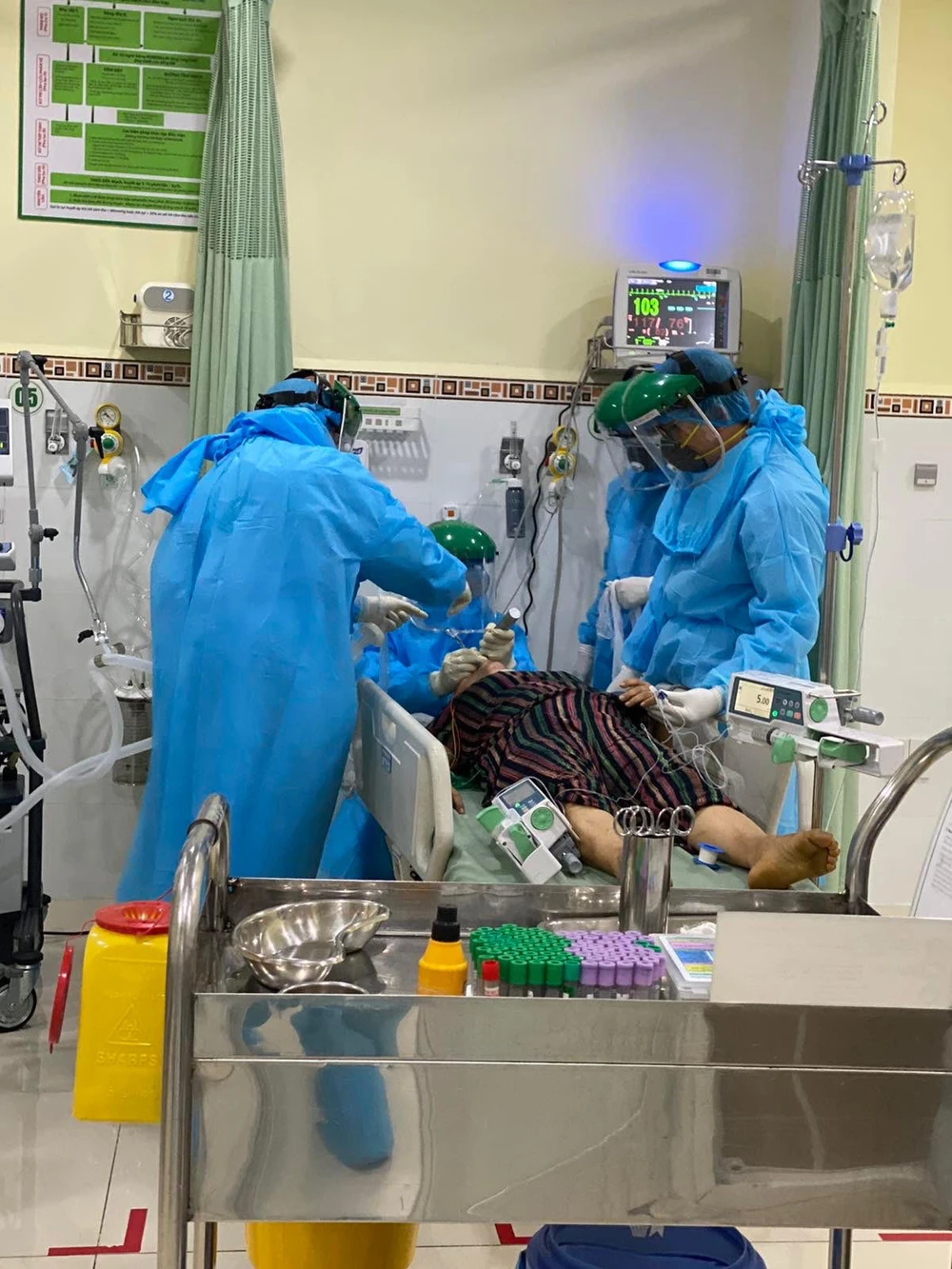 BS CKII Trần Thanh Linh, Đội trưởng đội phản ứng nhanh số 1 cùng các đồng nghiệp tiến hành cấp cứu bệnh nhân nặng. Ảnh: BVCC