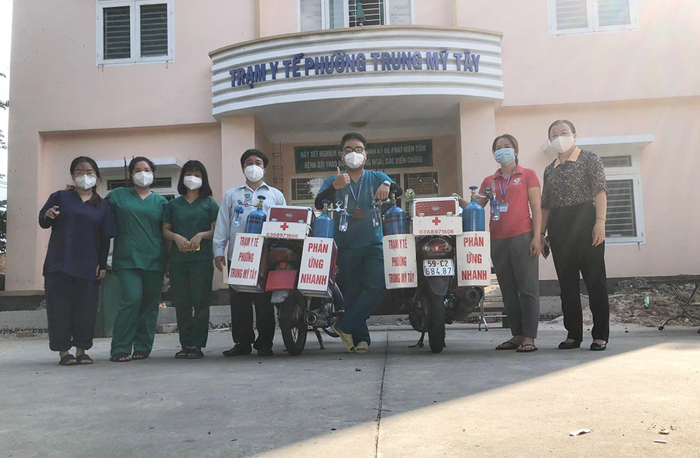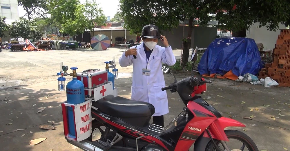 Theo đó, hai xe máy là phương tiện di chuyển chủ yếu của Đội phản ứng nhanh đã được cải tạo để chở bình oxy, dây thở, máy đo, thuốc men… để cấp cứu cho bệnh nhân.
