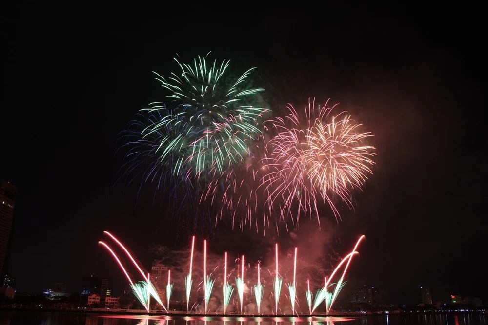 Hàng chục ngàn khán giả có mặt bên trong khán đài và ven hai bờ sông Hàn không khỏi trầm trồ, thán phục trước trước những "nét vẽ" nhịp cầu tình yêu bằng pháo hoa của đội chủ nhà.