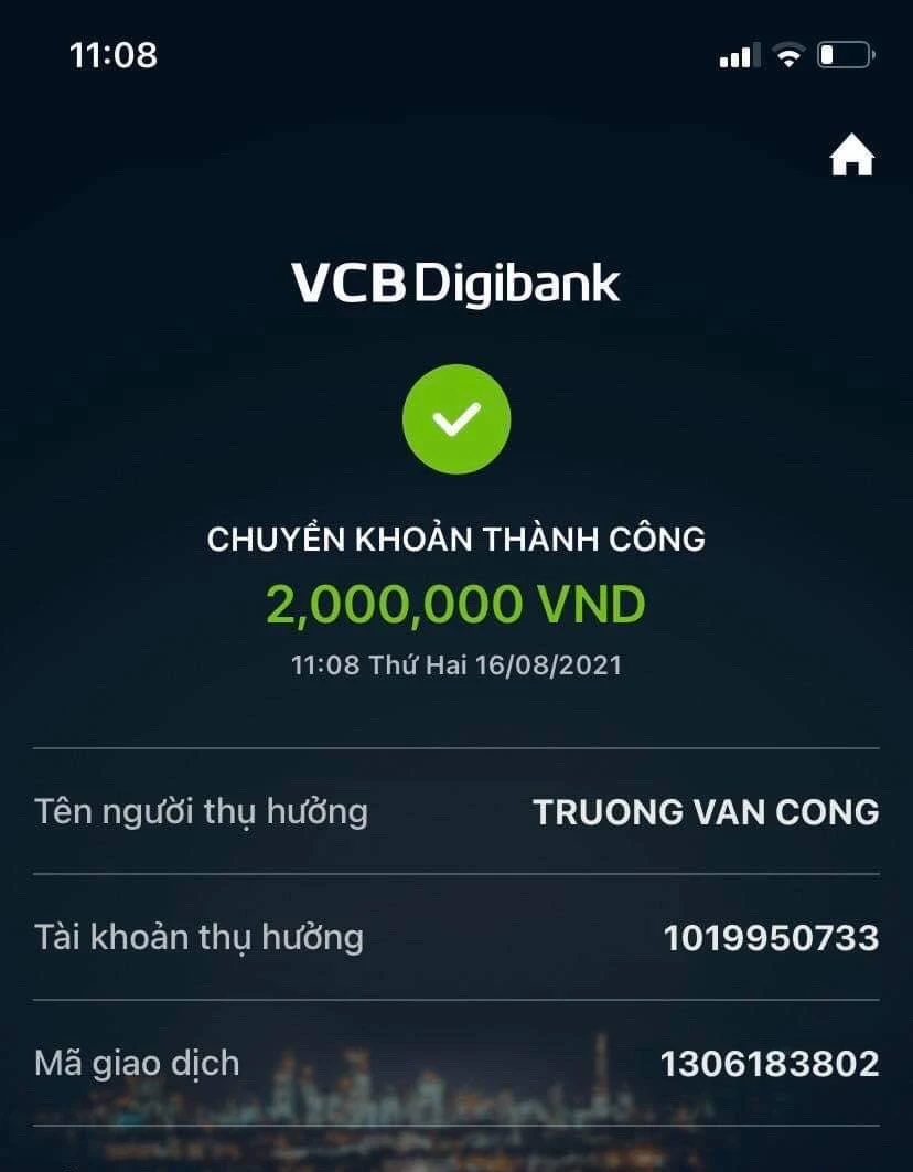 Công đã đưa số tài khoản của mình cho anh Đ. chuyển khoản. Lúc này anh Đ. nhờ một người bạn chuyển cho Công 2 triệu đồng.
