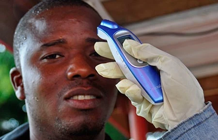 Đo thân nhiệt trước khi vào Monrovia (Liberia). Ảnh: GETTY IMAGES