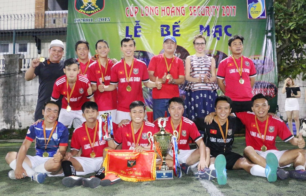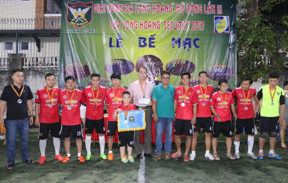 Ban tổ chức giải cùng đội vô địch chụp hình lưu niệm