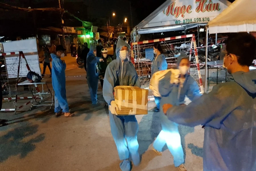“Mỗi ngày, lúc 7 giờ sáng, đội phân ra các nhóm nhỏ, thực hiện việc vận chuyển hàng ở các chốt vào sảnh các block. Nhóm ở Bến Phú Định (quận 8) sẽ nhận hàng, nhắc nhở người giao hàng ghi chính xác số căn, block của người nhận. Nhóm khác khuân vác hàng lên xe chở bằng xe ba gác, xe tải về chốt A9. Tại chốt này, chúng tôi sẽ phân hàng ra, chở bằng xe máy vào từng block. Ở sảnh, một nhóm khác sẽ nhận nhiệm vụ đưa hàng lên các tầng, căn hộ bị cách ly” – anh Châu cho biết.