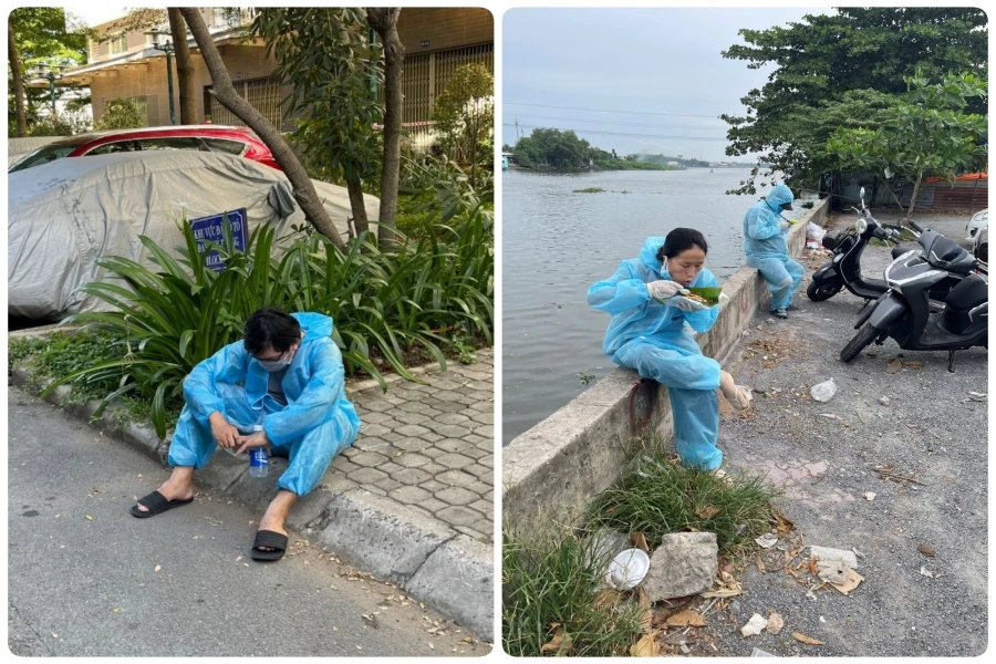 Công việc cứ lặp đi lặp lại như thế từ sáng sớm cho đến gần 10 giờ tối. Các thành viên của đội phải mặc đồ bảo hộ, nóng bức, mệt thì cũng chỉ dám ngồi tạm dưới bóng cây. Cư dân thấy thương, muốn nói cảm ơn cũng phải đứng từ xa cúi đầu ra hiệu.