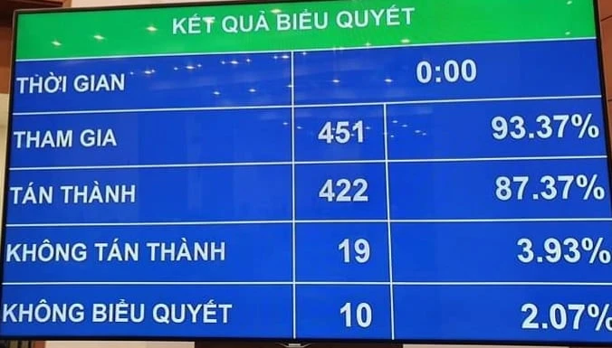 Chiều 19-6, QH đã thông qua Luật sửa đổi, bổ sung một số điều của Luật Tổ chức Quốc hội, với 422/451 ĐBQH tham gia biểu quyết tán thành, 19 ĐB không tán thành, 10 ĐB không biểu quyết.