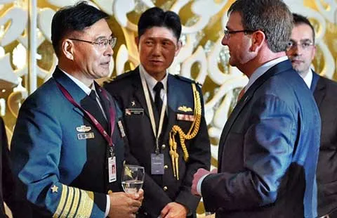 Tại phiên họp toàn thể sáng 31-5, phái đoàn Trung Quốc do Đô đốc Tôn Kiến Quốc dẫn đầu đã bác bỏ yêu cầu của Bộ trưởng Quốc phòng Mỹ Ashton Carter đưa ra hôm trước đề nghị Trung Quốc ngưng xây dựng đảo nhân tạo.