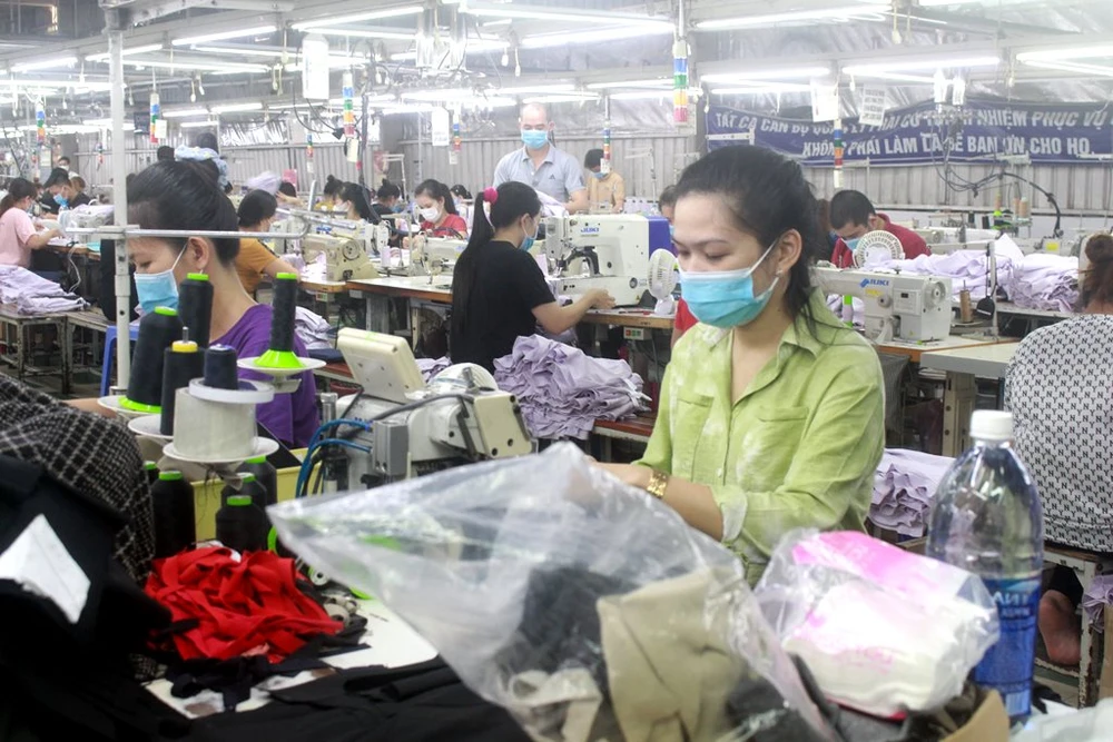Công nhân Công ty TNHH May xuất khẩu Việt Thành vẫn duy trì sản xuất thời gian qua. Ảnh: HH