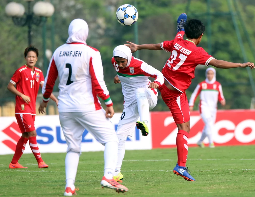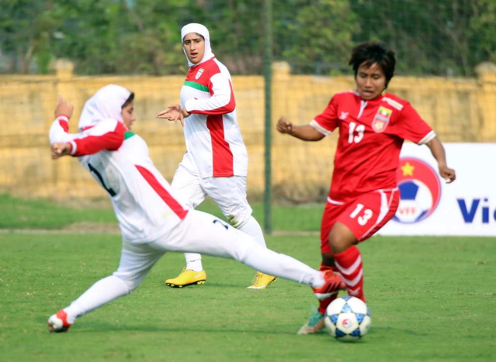 Các cô gái Iran dù rất nỗ lực vẫn không thể ngăn cản tuyển nữ Myanmar.