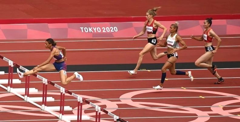 Ba VĐV chiến thắng cự ly 400 m rào nữ tại Olympic Tokyo. ẢNH: GETTY
