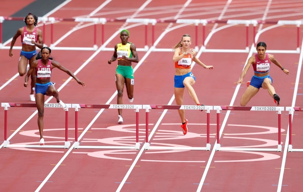 Chân chạy 31 tuổi Muhammad dẫn đầu trong số tám VĐV đấu chung kết khi vượt qua rào cản cuối cùng nhưng McLaughlin đã tạo ra một cú bứt tốc mạnh mẽ những mét cuối để lần đầu tiên đăng quang thế vận hội.