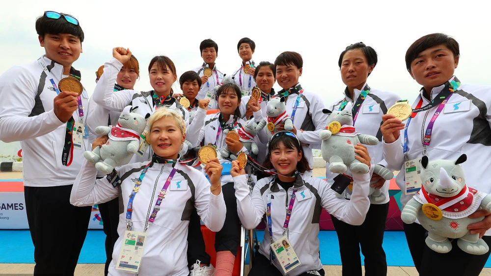 Đội thuyền rồng nữ liên Triều đoạt HCV nội dung 500m tại Asiad 18