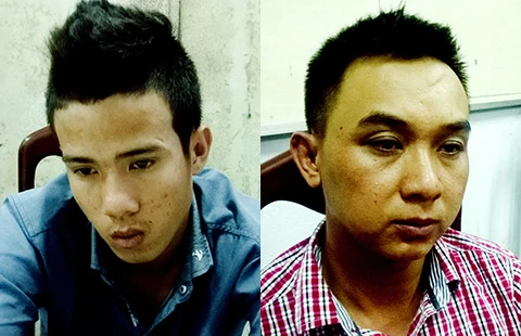 Thắng và Sơn tại cơ quan công an. Ảnh: AB