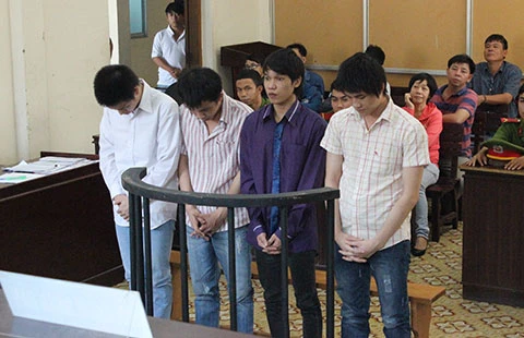 Bốn bị cáo Lý, Hiếu, Hưng, Hải (từ phải qua) tại phiên tòa. Ảnh: H.TÚ