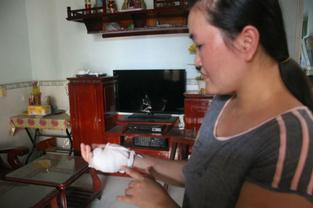 Con gái ông Tôn bị nhóm côn đồ chém bị thương ở tay khi giải cứu cho cha.