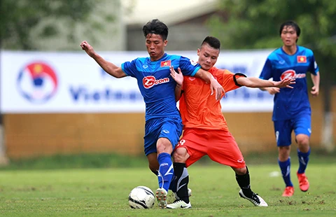 Quân xanh U-19 còn rất trẻ nhưng vẫn là trở ngại cho thầy trò HLV Hữu Thắng. Ảnh: QUANG THẮNG