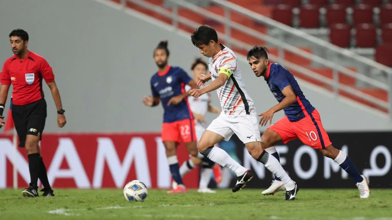 JDT (áo xanh) trong trận thua Nagoya Grampus 0-1. Ảnh: AFC