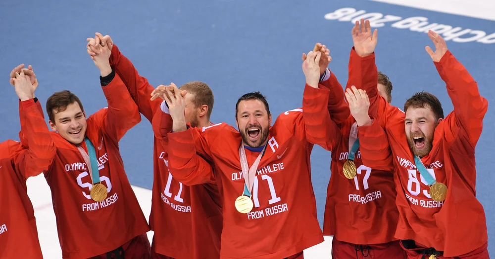 Đội tuyển khúc côn cầu Nga giành được huy chương vàng tại Thế vận hội mùa Đông PyeongChang 2018. Ảnh: REUTERS