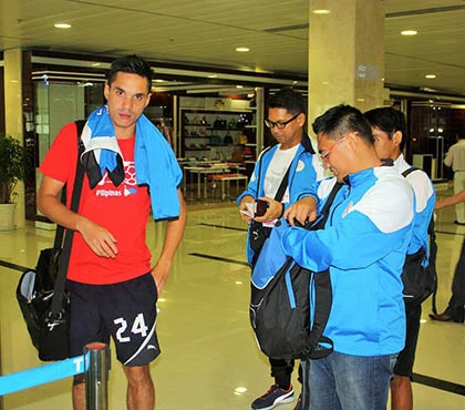 Các tuyển thủ Philippines không có chuyến bay thẳng từ Manila đến Hà Nội đã phải quá cảnh ở sân bay Tân Sơn Nhất hơn một giờ đồng hồ. Trưởng đoàn Jozep Malinay cho biết sau trận giao hữu cuối cùng thua Thái Lan 0-3 trên sân khách, toàn đội Philippines đã sẵn sàng cho chiến dịch đoạt cúp Đông Nam Á sau hai lần đồng hạng ba năm 2010 và 2012.