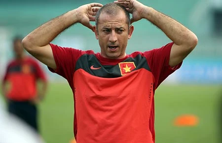 Ông thầy Guilaume đang cố gắng hướng các học trò tập trung vào tập luyện và giải đấu để không chịu ảnh hưởng bởi những lời tung hứng và ca ngợi quá lời sau trận thắng U-19 Úc. Ảnh: XUÂN HUY