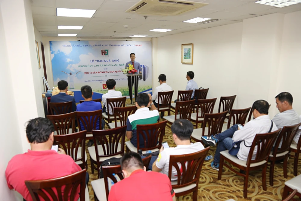 Trưa nay, 26-12, Công ty VJ và Trung tâm Hajko đã làm lễ trao tặng buồng ôxy cao áp Nhật Bản cho đội tuyển bóng đá nam Việt Nam tại khách sạn Đệ Nhất (TP.HCM).