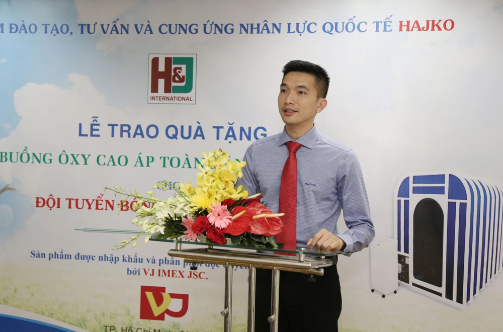 Phát biểu tại buổi lễ, ông Nguyễn Đức Hiển, Trưởng Ban tổ chức giải Fair Play, Phó Tổng biên tập báo Pháp Luật TP.HCM chia sẻ: “Tại lễ trao giải Fair Play lần thứ bảy, báo Pháp Luật TP.HCM nhận được thông tin Công ty VJ và Trung tâm Hajko tài trợ cho đội tuyển Việt Nam một buồng ôxy cao áp phục hồi sức khỏe và tăng sức đề kháng sau chấn thương trong thể thao nói chung và bóng đá nói riêng.