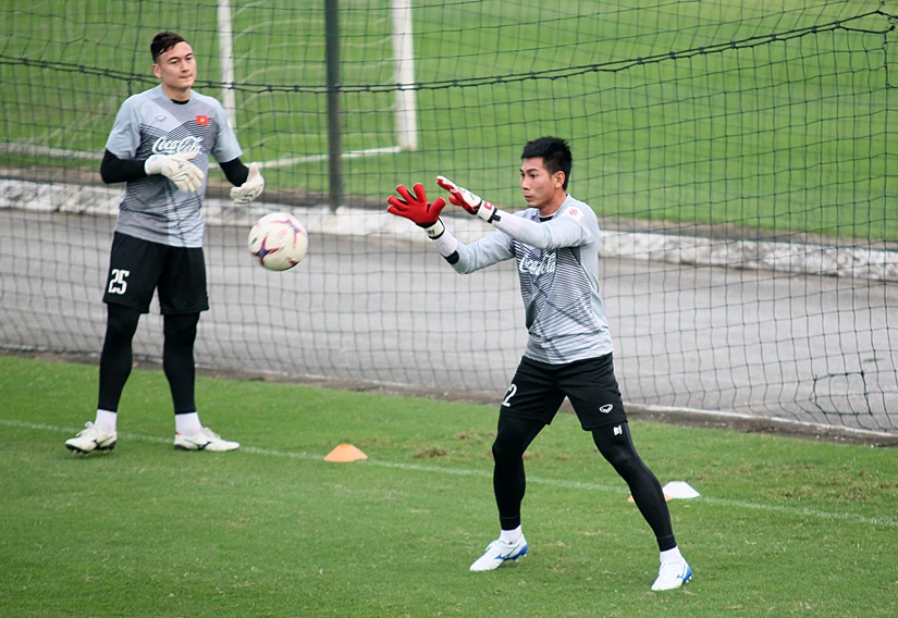 Góc riêng của các thủ môn đội tuyển Việt Nam tập luyện rất tập trung.