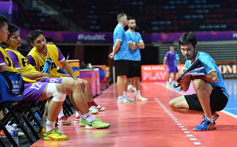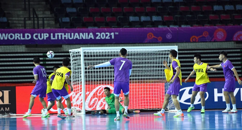 Sau khi đến sân, thầy trò Phạm Minh Giang hào hứng với sự chuẩn bị chu đáo của FIFA và nước chủ nhà. Tại đây, ngoài các trang thiết bị tổ chức thi đấu đã hoàn tất. Theo VFF, do buổi tập chính thức giới hạn thời gian, nên đội tuyển futsal Việt Nam nhanh chóng bước vào việc rèn giũa chiến thuật cho trận ra quân gặp Brazil. Các cầu thủ thích thú với mặt sân thi đấu hiện đại với chất lượng cao cho phép họ phô diễn những pha xử lý bóng kỹ thuật.